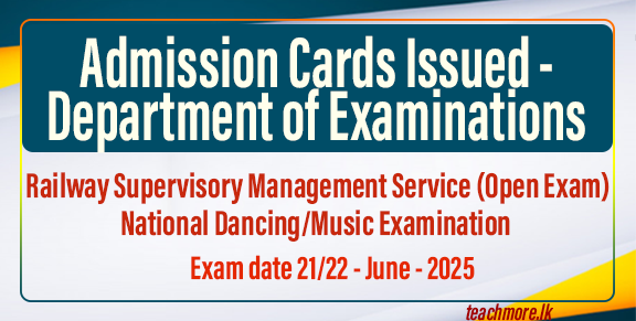 The Department of Examinations, Sri Lanka, has announced that Admission Cards for the following examinations have been dispatched to the addresses provided by applicants: