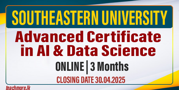 The South Eastern University of Sri Lanka (SEUSL) invited applications for the Advanced Certificate in Artificial Intelligence and Data Science for the 2025 intake. This program is designed to equip participants with cutting-edge skills in AI and Data Science, fostering expertise in a rapidly evolving technological landscape.