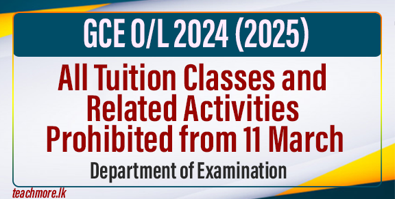 The Department of Examinations has announced that all tuition classes, seminars, workshops, and any form of academic assistance via social or electronic media for candidates sitting for the 2024 GCE O/L Exam will be strictly prohibited from midnight on 11 March 2025.