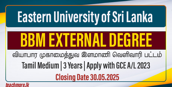 The Faculty of Commerce and Management, Eastern University, Sri Lanka, has announced admissions for its BBM External Degree 2025 – Bachelor of Business Management (BBM) External Degree programme for 2025. Administered through the Centre for External Degrees and Extension Courses (CEDEC), this three-year programme offers flexible learning opportunities for eligible candidates.