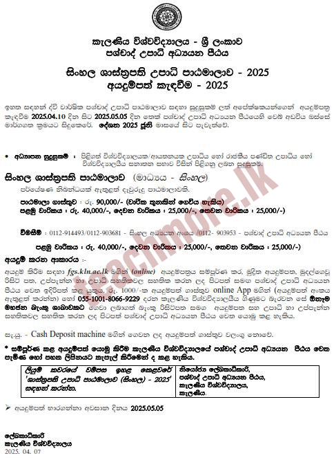 University of Kelaniya Invites Applications for MA in Sinhala – 2025 Intake
