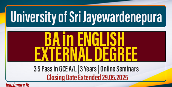 The External Degrees and Extension Courses Unit (EDECU) of the University of Sri Jayewardenepura has announced an extension for applications to its Bachelor of Arts in English (General) External Degree Programme – 2025 intake. The new deadline for submission is 29th May 2025, providing additional time for eligible candidates to apply.