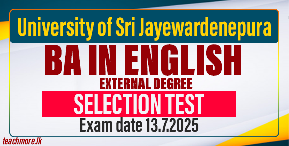 The University of Sri Jayewardenepura has announced a Selection Test for applicants of the Bachelor of Arts in English (General) External Degree Programme for the academic year 2025. The test is scheduled to take place on Sunday, 13th July 2025, from 10.00 am to 12:00 noon at St. John Boys’ College, Nugegoda.