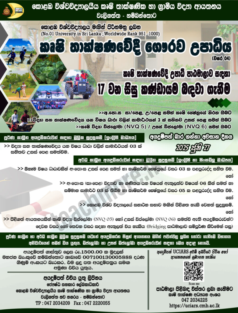 Bachelor of Agro-Technology (Honours) Program Sinhala details