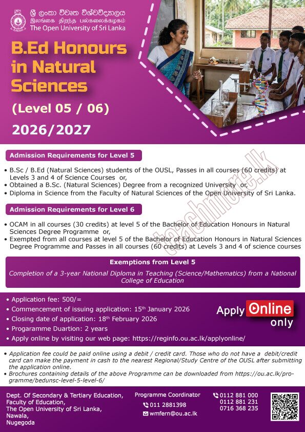 BEd (Hons) in Natural Sciences 2026/2027 - OUSL