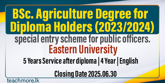 The Faculty of Agriculture at Eastern University, Sri Lanka, has announced admissions for its BSc. in Agriculture Degree Program (2023/2024 intake), specifically targeting diploma holders in agriculture through a special entry scheme for public officers.