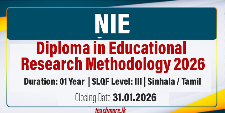 The National Institute of Education (NIE), Maharagama, has officially announced the commencement of applications for the Diploma in Educational Research Methodology (Intake 2026), offered at SLQF Level III.