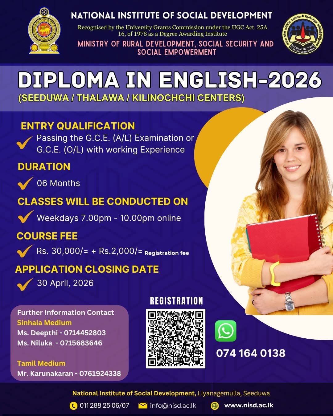 This is a valuable opportunity for students and working individuals across Sri Lanka to improve their English proficiency through a recognized government institute.