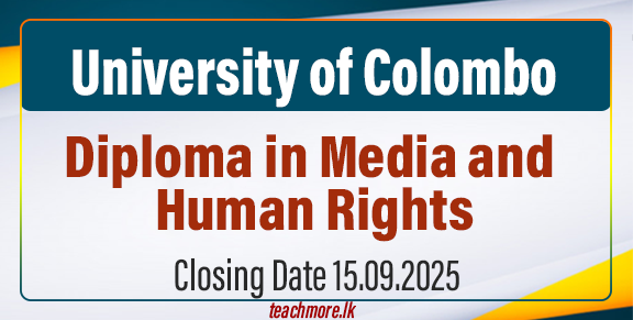 The University of Colombo’s Faculty of Law, now accepting applications for the Diploma in Media and Human Rights for the academic year 2025/26. This one-year program, which is classified under the SLQF 03 framework, will be conducted in both Sinhala and Tamil and will hold lectures on weekends via Zoom.