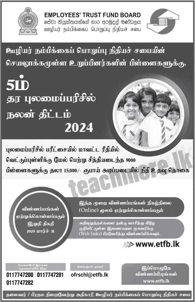 Application for Grade 5 Scholarship Awards 2024 – Employees’ Trust Fund Board (ETFB)