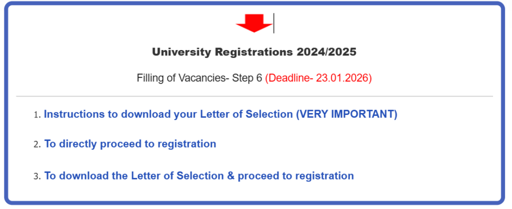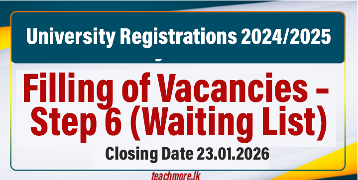The University Grants Commission (UGC) has announced Step 6 of the Filling of Vacancies under the University Registrations 2024/2025, specifically for candidates in the Waiting List – 6 category.