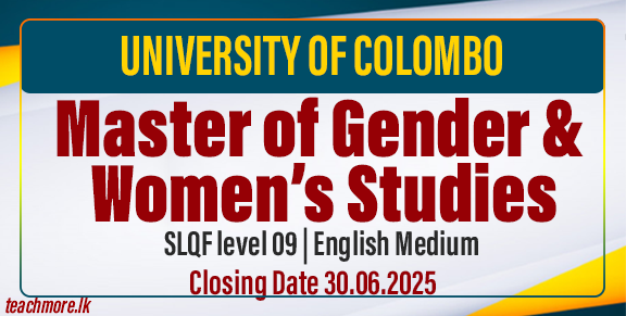 The Faculty of Graduate Studies at the University of Colombo has announced the call for applications for its Master of Gender & Women’s Studies (MGWS) program for the academic year 2025/26. This one-year program, conducted in English and held on Saturdays, is designed to equip students with advanced knowledge in gender and women’s studies, aligning with SLQF Level 09 (30 credits).