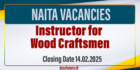 The National Apprentice and Industrial Training Authority (NAITA) has announced vacancies for Instructor positions in Wood Craftsmanship at its Kurunegala District Office and IETI – Katubedda. Interested candidates with experience in Building or Furniture Craftsmanship are encouraged to apply.