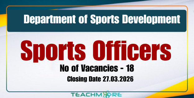 The Department of Sports Development has announced the recruitment of Sports Officers (Grade III) under the Management Assistant-Technical Segment 2 service category for 2026. Applications are invited from eligible Sri Lankan citizens to fill 18 vacancies currently available within the department.